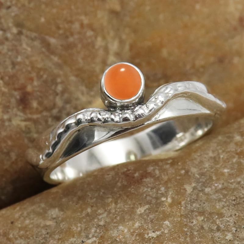 - SPEZIFIKATIONEN: - Ringfarbe: Silber, Gewicht ca. (gms) : 4.5, Ringbandbreite ca. (mm) : 4, Edelstein : Pfirsichfarbener Mondstein / Steingröße : 4 mm / Steinform : Runden, Andere Metalle : Messing