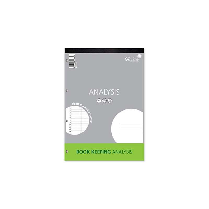Silvine A4 Book Keeping Analysis Pad, 80 Pages Printed 'Analysis' 8 Columns - Ref A4A8,Grey