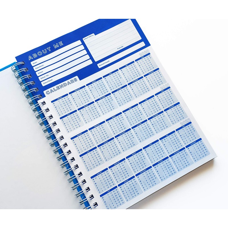 - 6 period academic teacher's planner with durable hardback covers and double page marker ribbon