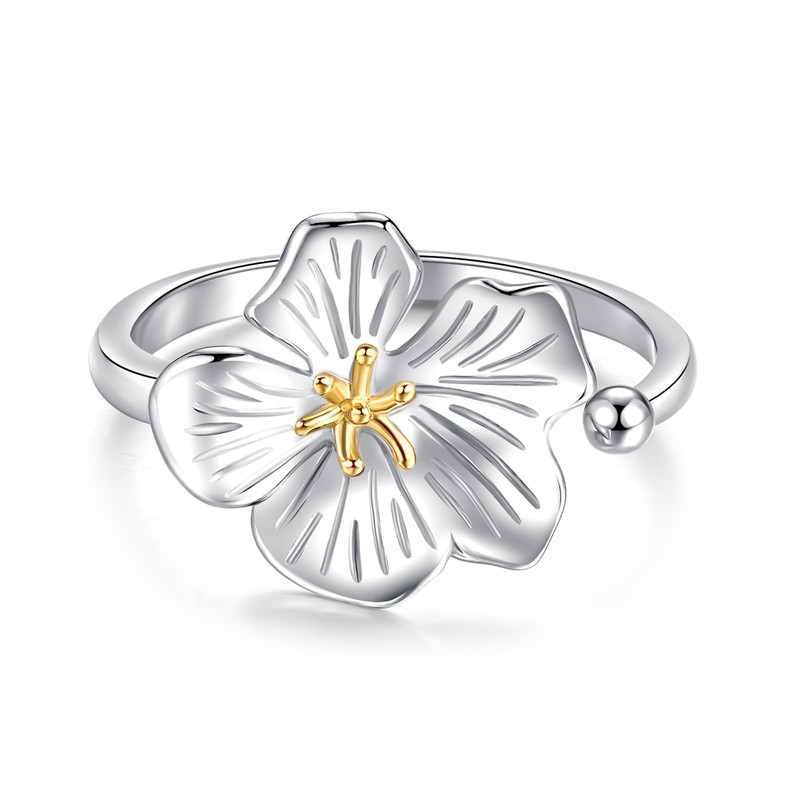 SILVWHIS 925 Sterling Silver Flower Ring Adjustable Thumb Rings for Women, Metal, Cubic Zirconia