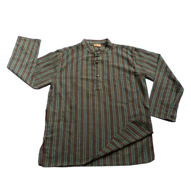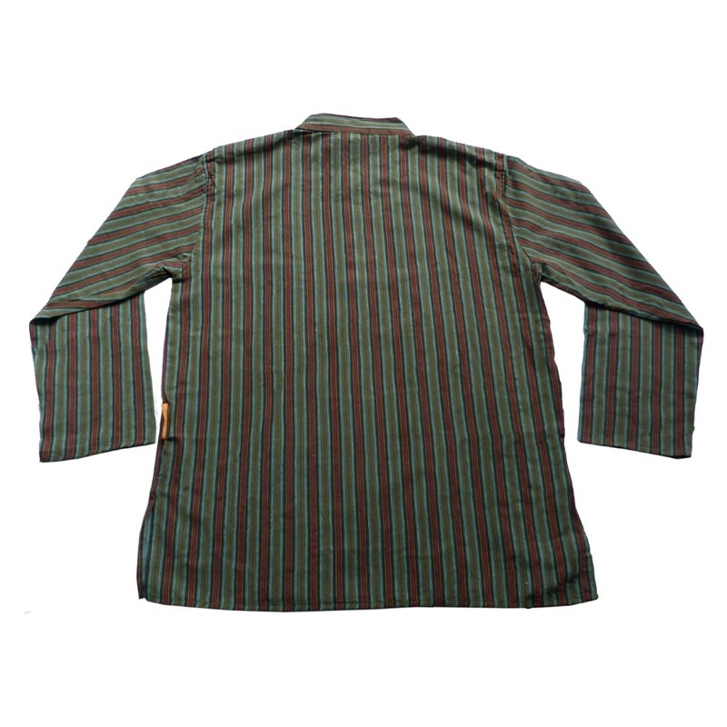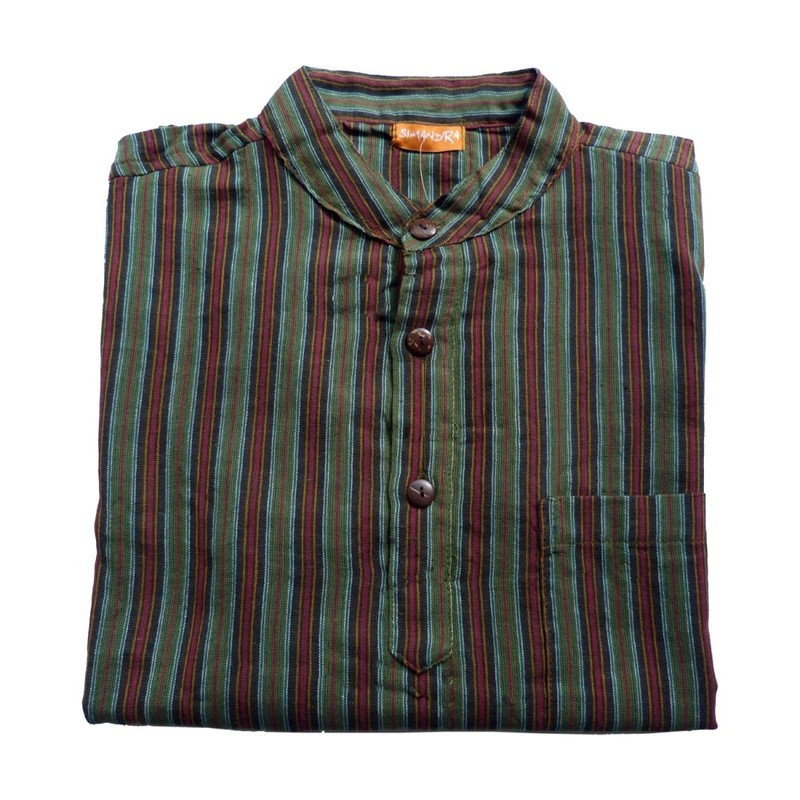 Simandra Striped Kurta Fishing Shirt with Stand-Up Collar - Green