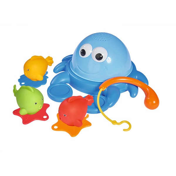 - Bath crab with strainer, 3 water spray fish, pendant and fishing rod