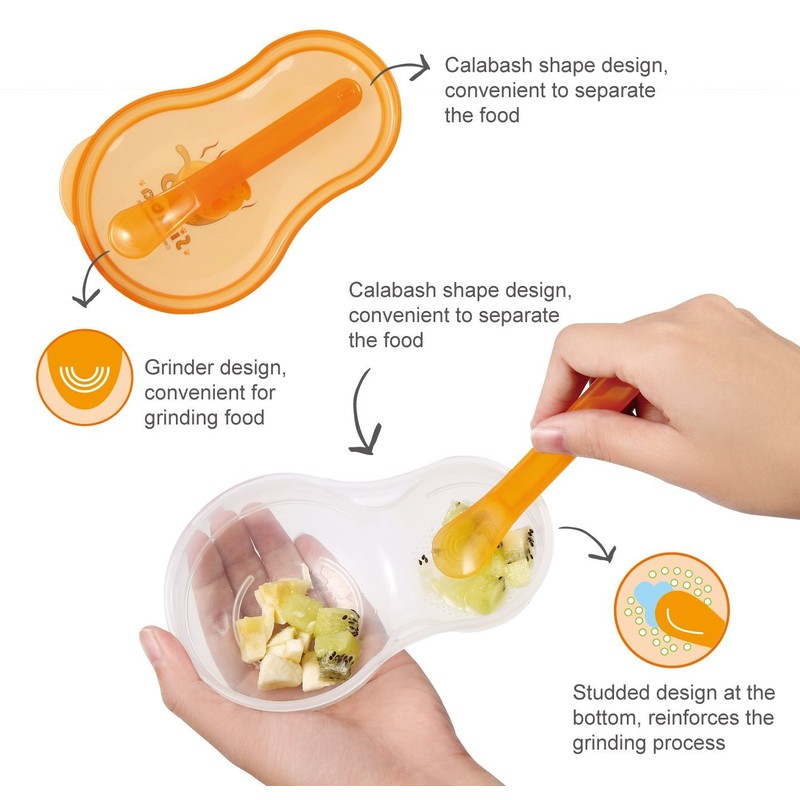 - Spoon and containers are uniquely designed to ease grinding and mashing steam vegetable, fruits, baby foods when needed to keep the essential nutrients locked in.