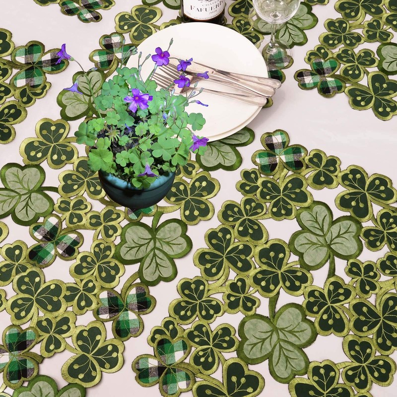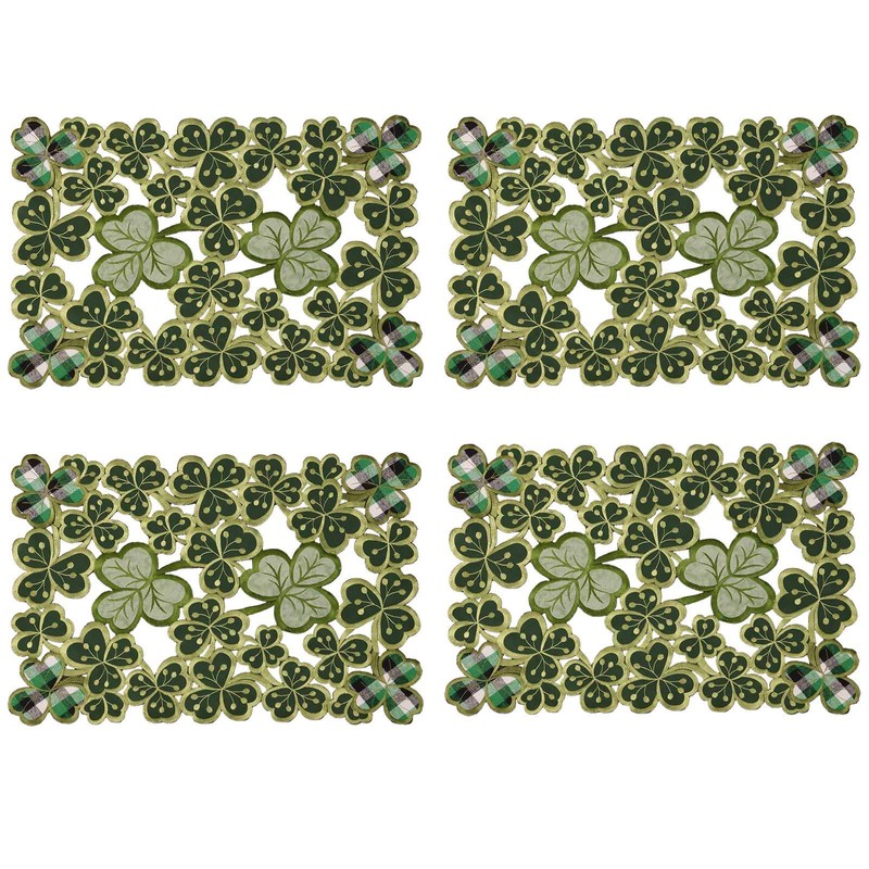 Simhomsen Embroidered Irish Clover Table Placemats for St. Patrick’s Day, Spring Shamrock Decorations (13 x 19 inches Set of 4)