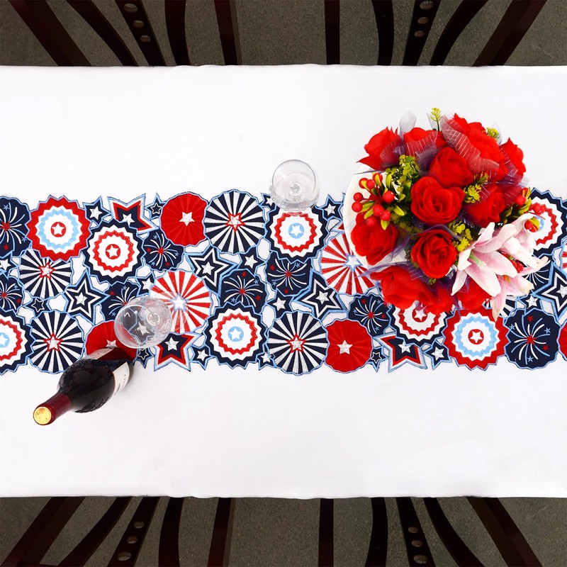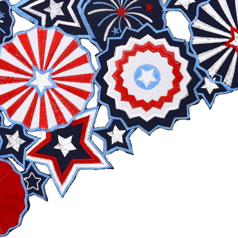 Simhomsen Embroidered Patriotic July 4th Table Runner, Red White Blue Stars and Pinwheels Design, Decorative Scalloped Edge (13 x 68 inches)