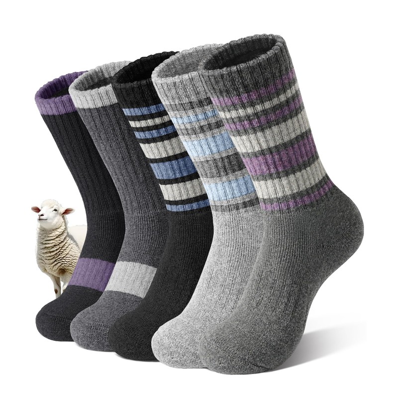 - 【Versatile Style & Thoughtful Gifting】Five vibrant merino wool hiking socks, stretchy and comfortable, pair effortlessly with boots, slippers, sneakers or casual shoes. Blending practicality and elegance, they are winter staples, hiking companions or daily essentials—perfect gifts for those who value warmth, comfort and timeless style.