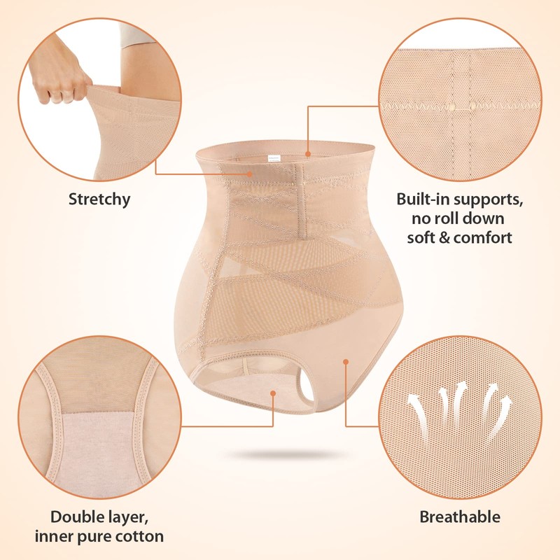 - 【Breathable & Stretchy Waist Shaper Panties】 Made by durable high elastic mesh fabric, this skims shapewear is very soft, breathable and comfortable, you can wear it everyday to let your stomach slimmer. Double-layer design of crotch, the cortch inner fabric is 100% pure cotton, adding more protective of health to private parts.