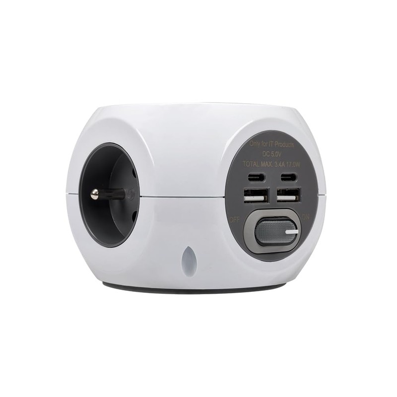- SOCKET COMBINATION Features 3 sockets with French socket, along with 4 USB charging ports(2 USB A + 2 USB C) with 3.4A, 5.0VDC 17.0W
