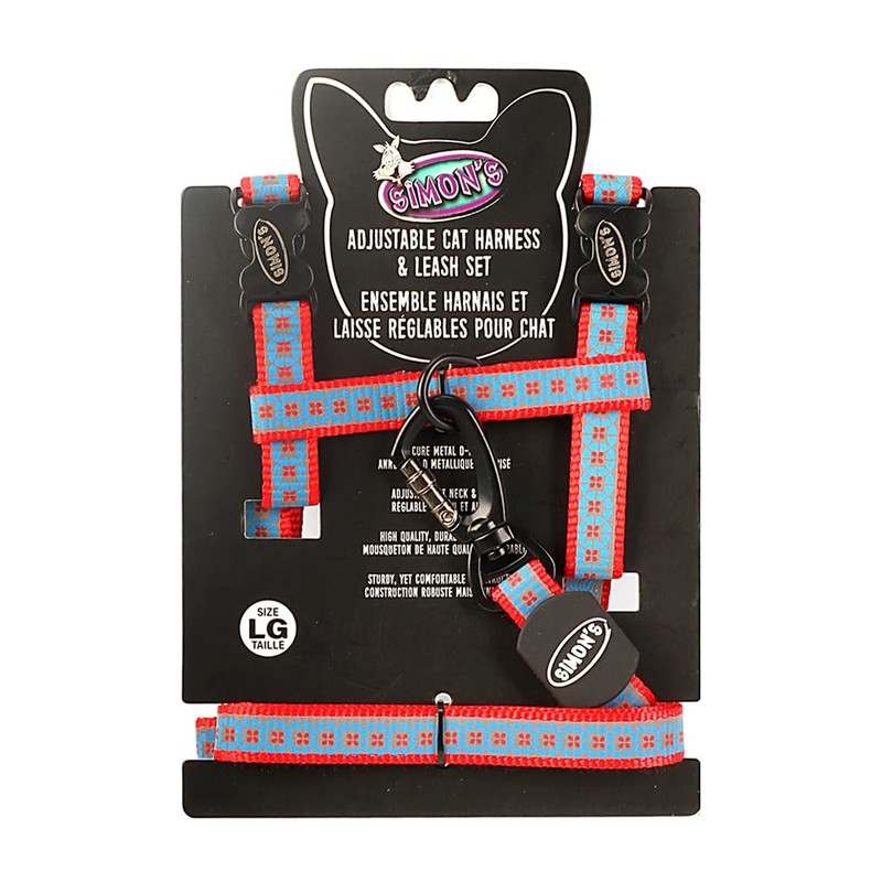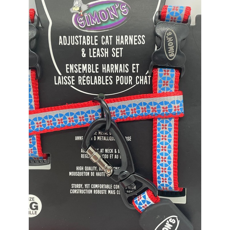 Simon's Cat Harness and Leash Set Fully Adjustable at Neck and Back, Durable Snap Hook and Metal D Ring, with 48" Leash (Red Flower lrg)