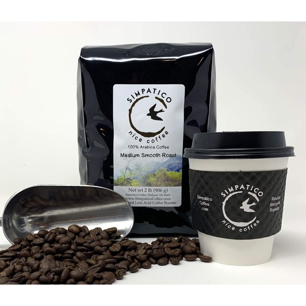 - Simpatico Organic Low Acid Medium Smooth Roast Coffee is a bright-bodied low acid coffee with a clean, nutty flavor.