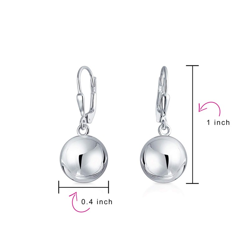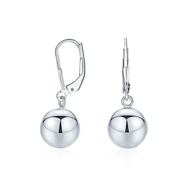 Simple Basic Dangling Lever back Round Bead Ball Drop Earrings For Women .925 Sterling Silver 10MM