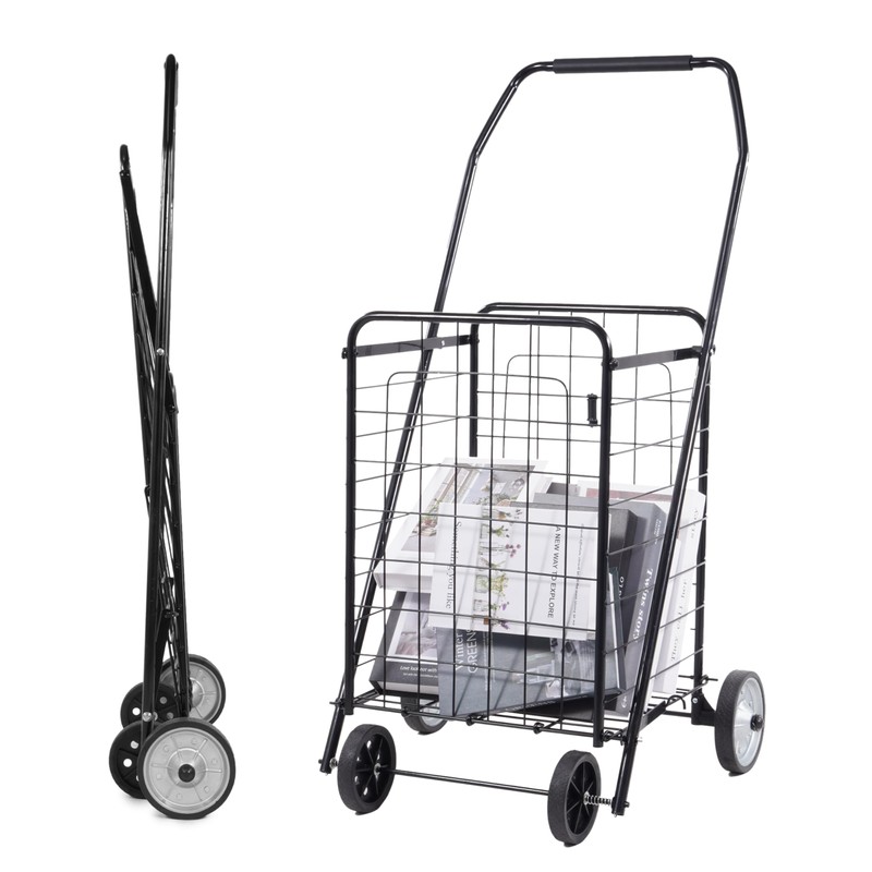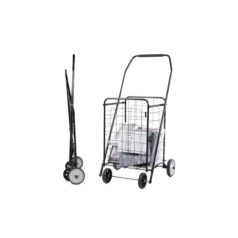 Simple Deluxe Folding Shopping Cart with Wheels, 88LB Capacity & Comfortable Foam Handle, Heavy Duty Collapsible Utility Cart for Groceries, Laundry, Travel, Books, Black
