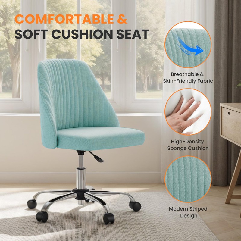 - Armless Swivel Office Chair: This modern, armless desk chair features a trendy polyester fabric exterior and a astriped sponge cushion, providing comfortable seating, suitable for offices, study rooms, bedrooms, and even makeup spaces.