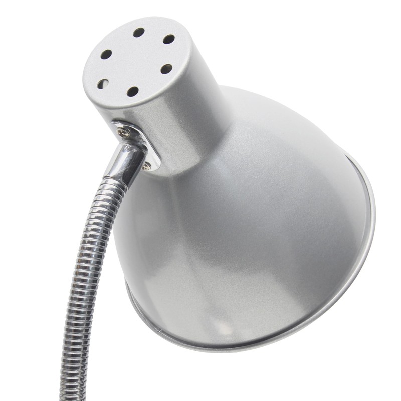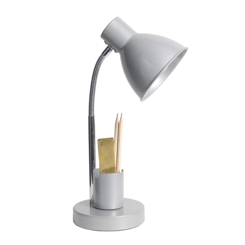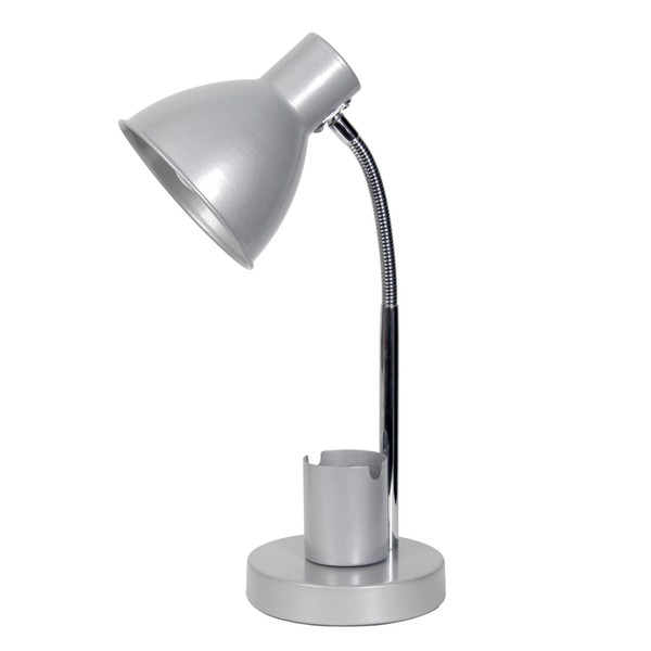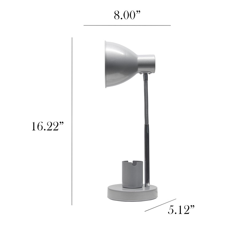 Simple Designs LD1076-SLV 16.22" Sleek Essentials Adjustable Metal Desk Task Lamp with Organizer Compartment, for Office, Desk, Nightstand, Dorm, Silver