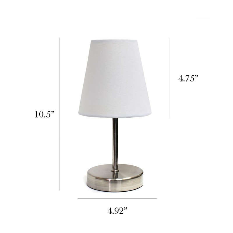 Simple Designs LT2013-WHT Mini Basic Sand Nickel Table Lamp with Fabric Shade...