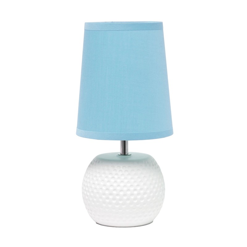 Simple Designs LT2084-BLU Mini Studded Texture White Ceramic Bedside Table Lamp, Blue