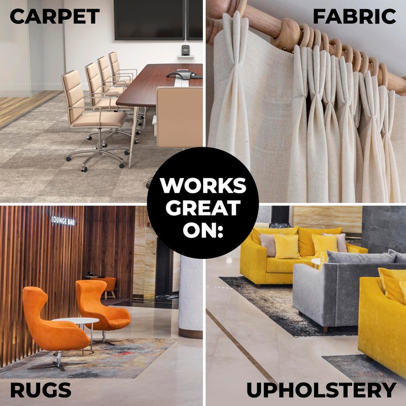 - Effectively cleans carpet, rugs, fabric, and upholstery