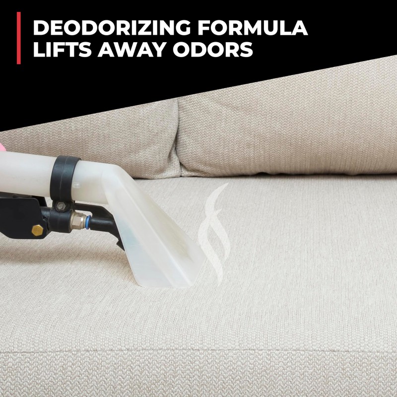 - Deodorizing formula removes odors from carpets, rugs, and upholstery and leaves behind a light, clean-laundry scent