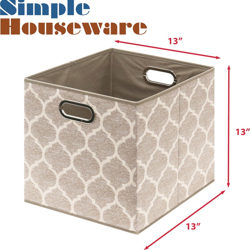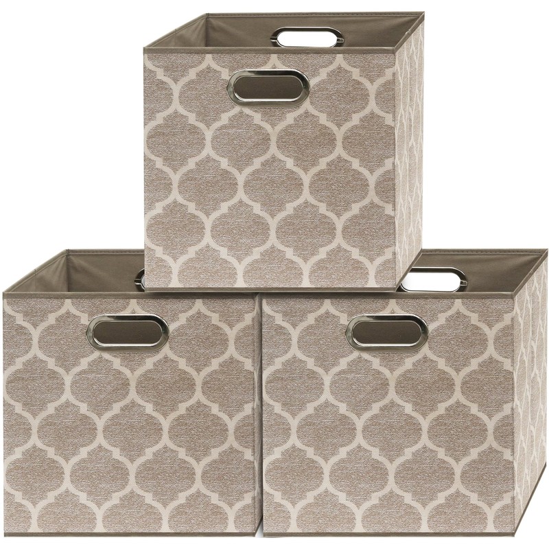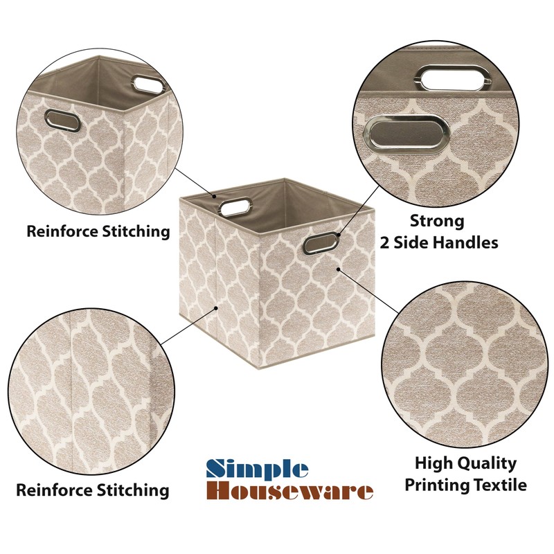 Simple Houseware 3 Pack 13" Printing Fabric Cubic Storage Bin with Handles, Beige