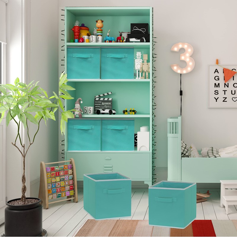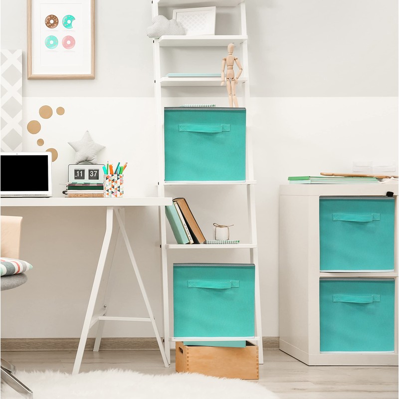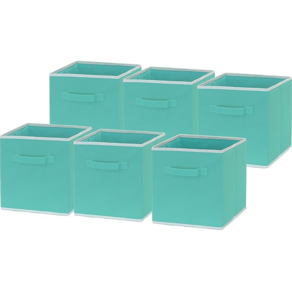 Simple Houseware Foldable Cloth Storage Cube Basket Bins Organizer, Turquoise (11" H x 10.75" W x 10.75" D) - 6 Pack