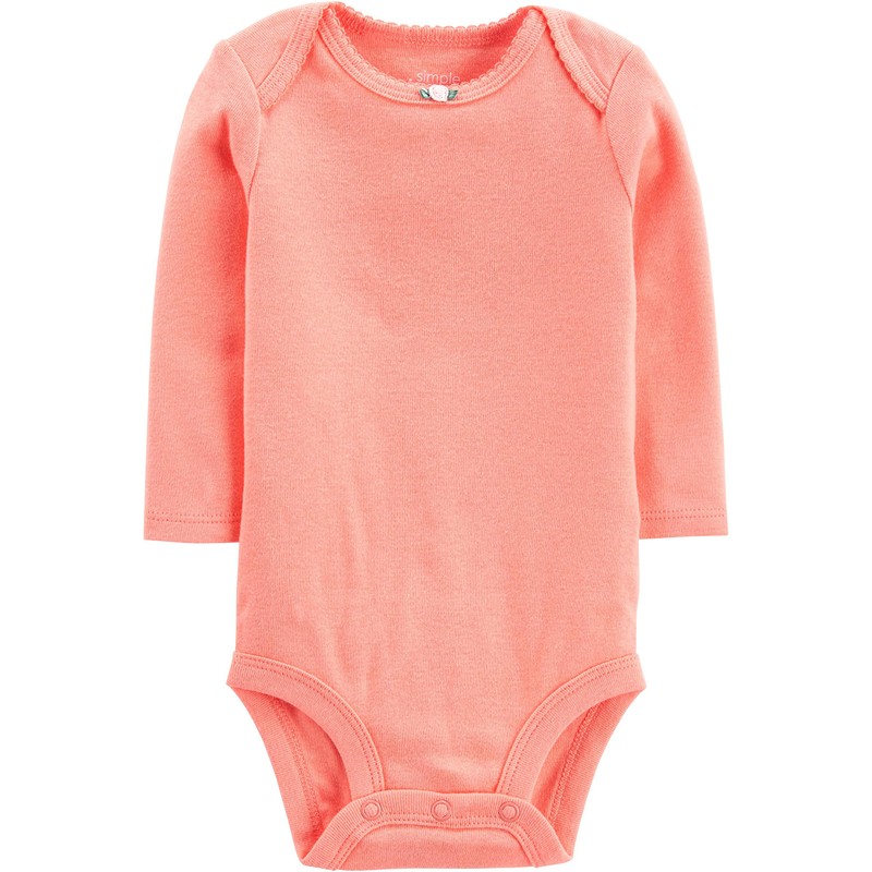 - Five long-sleeve bodysuits in baby-soft cotton featuring nickel-free snaps at reinforced panels