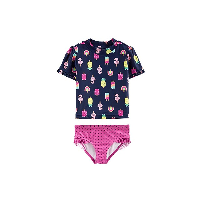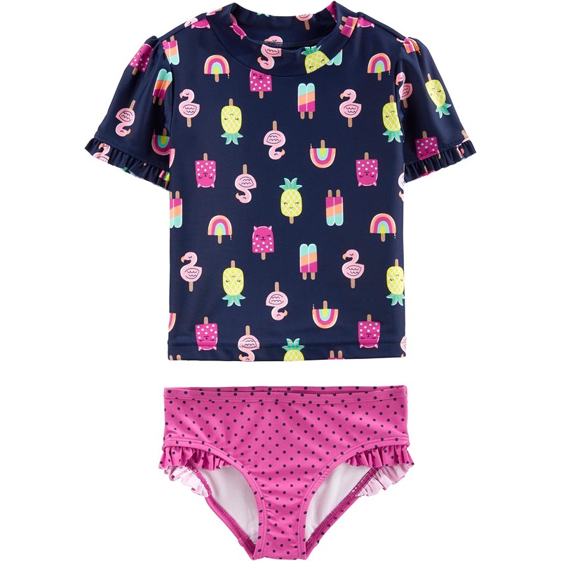 Simple Joys by Carter's Girls' 2-Piece Assorted Rashguard Sets, Navy Popsicles/Pink Dots, 3-6 Months