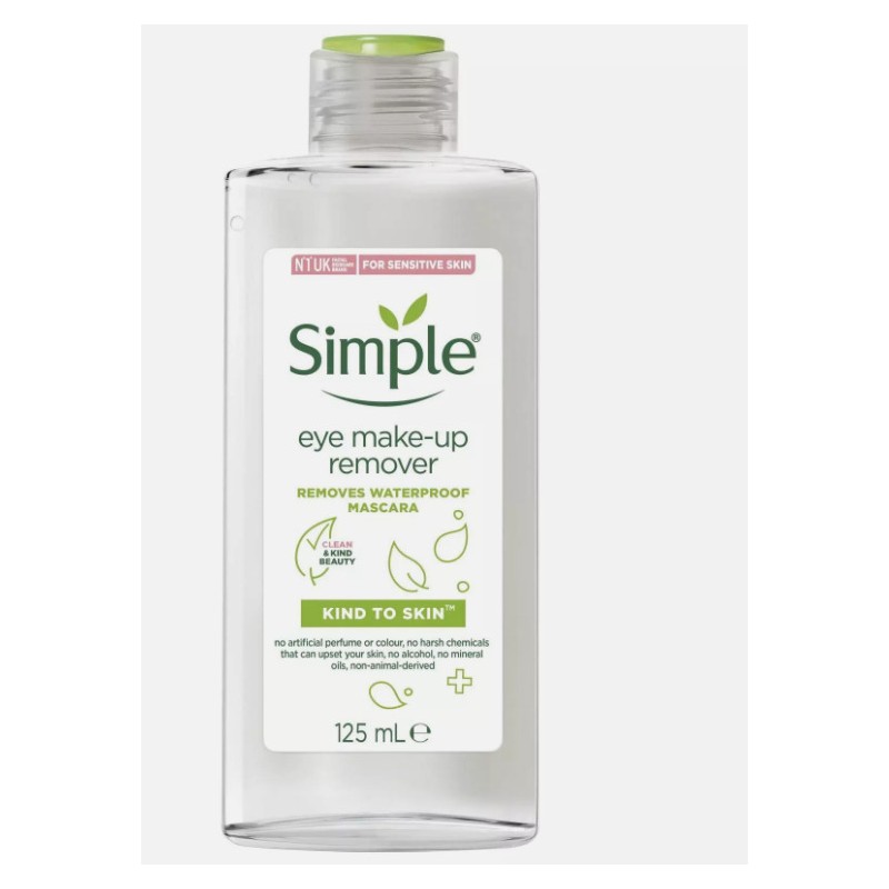 when your skin's happy and looking youthful, you feel healthier and happier too! simple's kind to eyes eye make-up remover contains the perfect blend of ingredients for effectively removing even waterproof mascara. how to get the best results apply to cotton wool and wipe gently around the eye area without rubbing. simple goodness: simple's special blend of simple cleansing goodness containing pro-vitamin b5, helps to gently remove even waterproof mascara. simple sense 4 steps to healthy, happy skin healthy skin is crucial for providing the right canvas for applying make-up, to enhance natural beauty and create natural healthy looking skin. Having a good daily skincare routine can dramatically improve the look and feel of our skin. Just a few steps every day will take tired, dull, unhealthy skin to bright, fresh and happy in no time. step 1: deep cleanse the deep cleanse is the first of the skincare steps and is where the magic begins. Everyday our skin encounters lots of dirt and impurities, be it through dirt, pollution, even make-up. The deep cleanse step is designed to gently but effectively get rid of all the dirt and impurities that have collected on your skin. After the deep cleanse step, your skin feels fresh and clean and deep down, it really is clean, with dirt and impurities removed. step 2: polish the polish is a crucial step in giving you brighter and smoother skin. This step helps to gently buff away dead skin cells, which sometimes dont budge on their own and can make skin look dull and dry. Its also brilliant to do before applying make-up. It helps to even out your skin, meaning that make-up like your foundation goes on more evenly and smoothly! the best products to use to polish your skin are exfoliators and toners. step 3: protect every day, our skin is exposed to the sun and to the environment, which can cause dryness, irritation and even premature aging. But help is at hand; your skincare routine can help combat this.