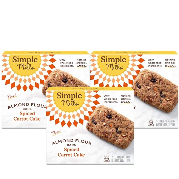 Simple Mills Almond Flour Snack Bars (Spiced Carrot Cake) with Organic Coconut Oil, Chia Seeds, Sunflower Seeds, and Flax Seeds, Made with whole foods, 5 Count (pack of 3) (Packaging May Vary)