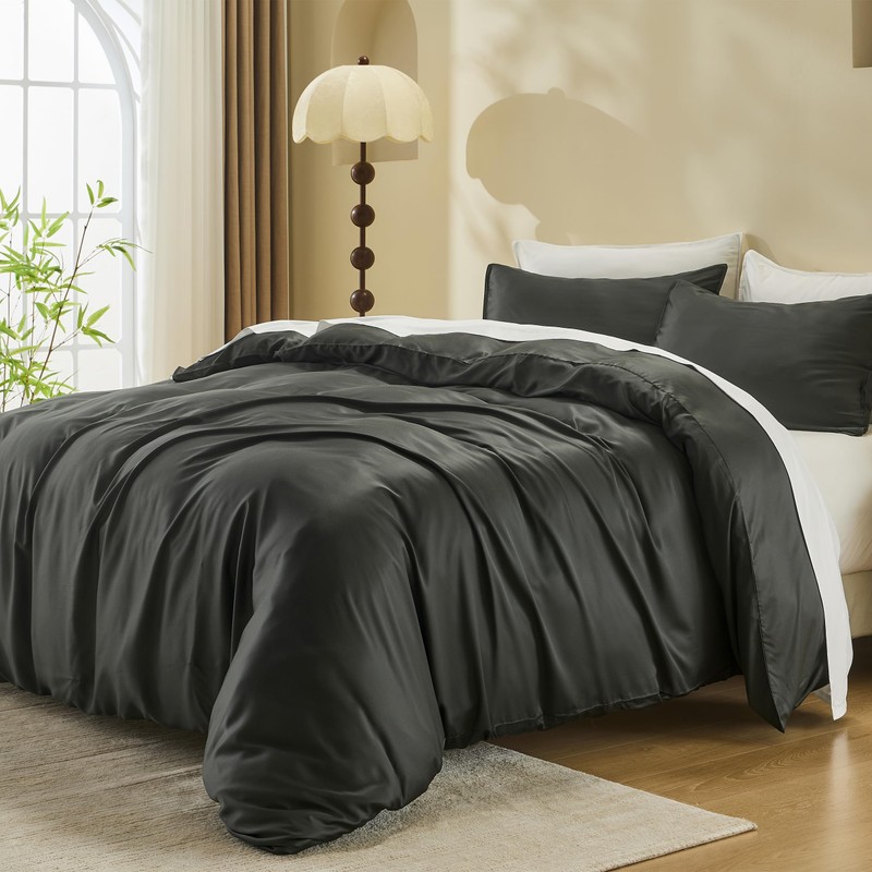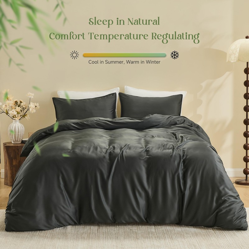 - [Premium Materials]: Made from 100% viscose derived from bamboo, with OEKO-TEX STANDARD 100 certification for the finished item, this duvet cover is a perfect blend of environmentally friendly and hypoallergenic properties. Its satin weave creates a luxuriously soft and smooth feel, while the wrinkle-resistant properties keep it looking neat. Long-lasting and durable for year-round comfort