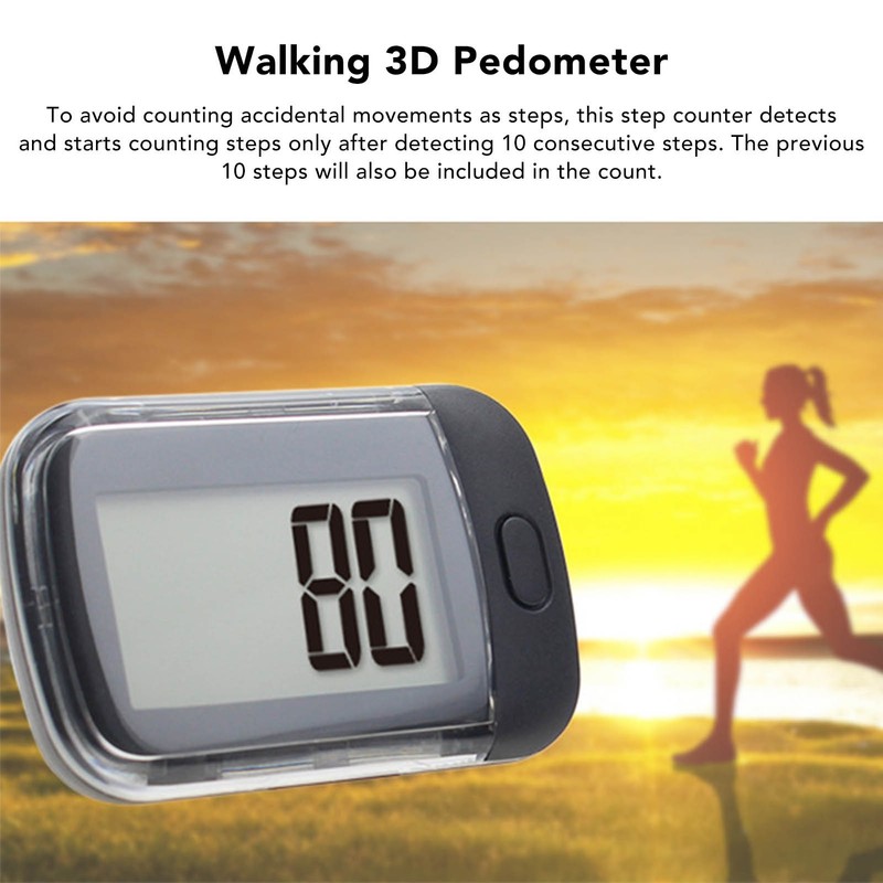 1、Sleep Mode: The 3D pedometer automatically turns off its LCD display after 1 minute of inactivity to save battery power and promote energy efficiency and environmental conservation. 2、10 Step Error Correction: To avoid counting accidental movements as steps, this step counter detects and starts counting steps only after detecting 10 consecutive steps. The previous 10 steps will also be included in the count. 3、Data Reset: Press and hold the RESET button for 2‑3 seconds to clear and reset the pedometer's display screen. 4、Multiple Wearing Options: Clip to your pocket or hip, wear around your neck or place in your pocket or bag. The simple feature and design makes it user friendly for men, women, kids and the elderly. 5、Large Digital Display: The walking 3D pedometer is scratch resistant and durable, providing a glossy texture with a smooth and refined appearance. With full screen display you can clearly and easily read the numbers at a glance.