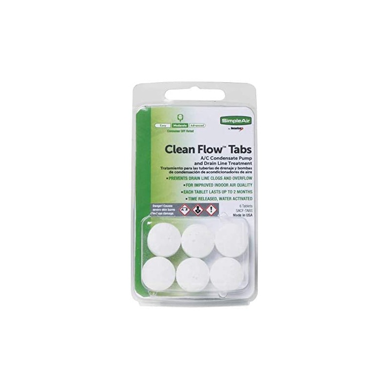 • SimpleAir’s Clean Flow Tabs are a simple method to maintain free-flowing drain lines associated with all HVAC systems