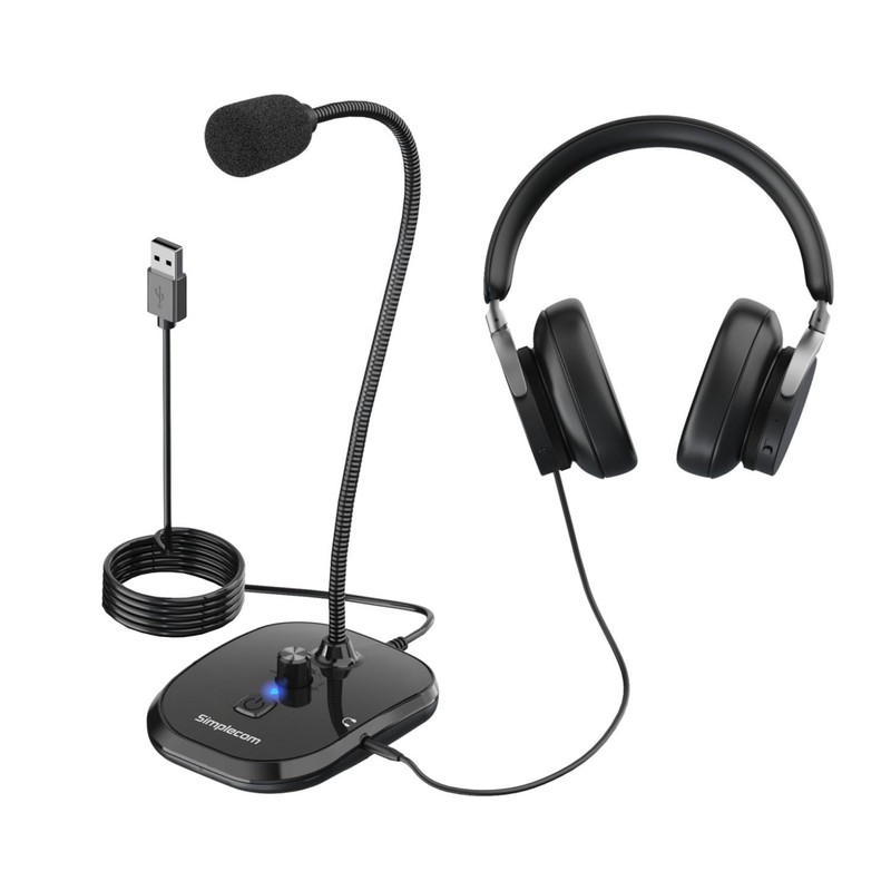 Simplecom UM360 Plug and Play USB Desktop Microphone with Headphone Jack