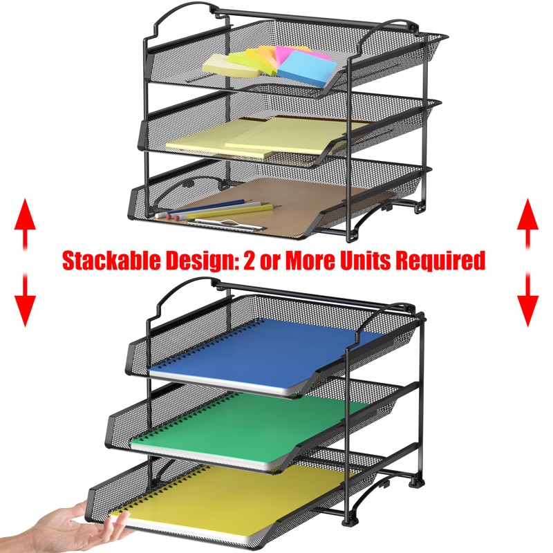 Simple Houseware 3-Tier Stackable and Sliding Desktop Document Letter Tray Organizer, Black