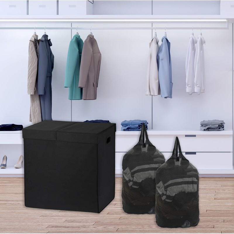 - Laundry bags included: Laundry bags attached on Hamper and removable for transport from hamper to wash machine.