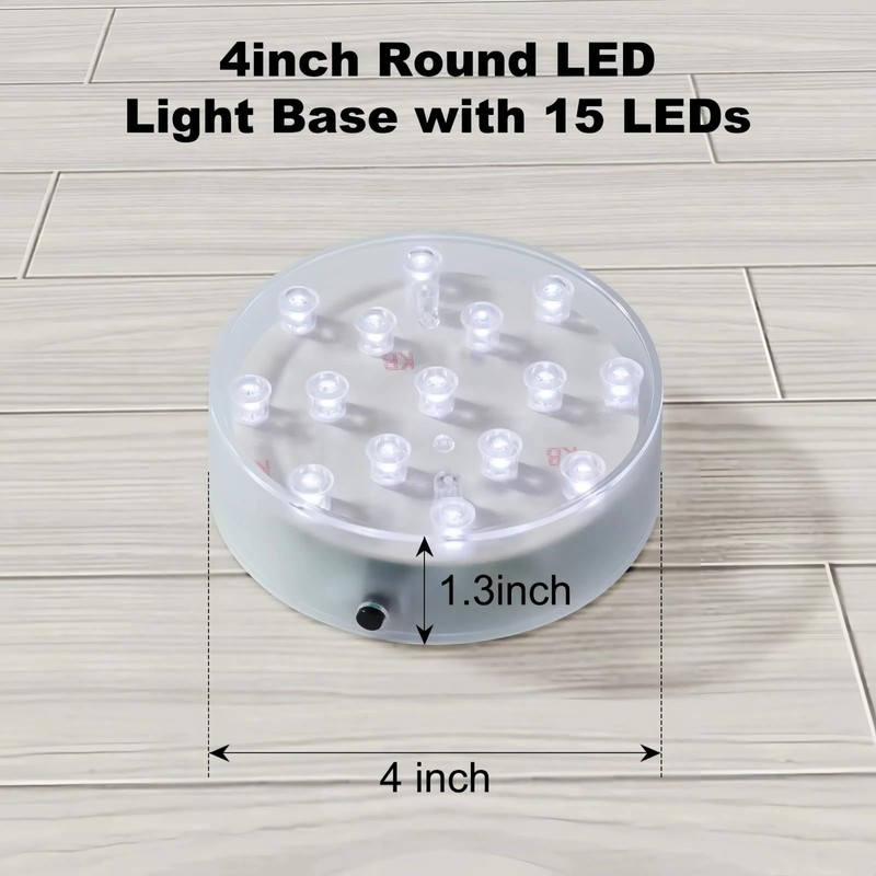 Simplelight 4 Inch Round LED Light Base- Perfect for Glass Art, Ideal Led Display for Vases, Centerpieces (4inch LED Vase Base Light, White)