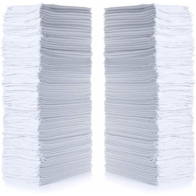 - Set Includes 150 Shop Towels in White measuring 14 by 12 inches each