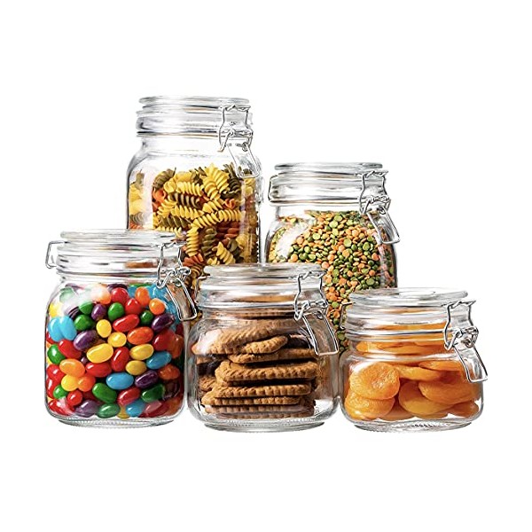 - EASY TO CARRY: Sick of dropping your glass jars? While other jars with lids are heavy and unwieldy, these jars are made for movement. That means that our glass canisters are thick enough to be strong, but light enough for daily use in your pantry.