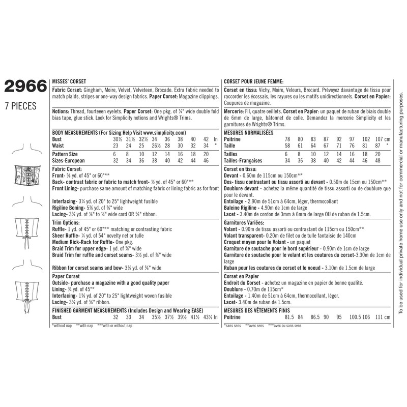 - Includes sewing templates, fabric suggestions, sizing guides, and instructions to create (2) different corsets.