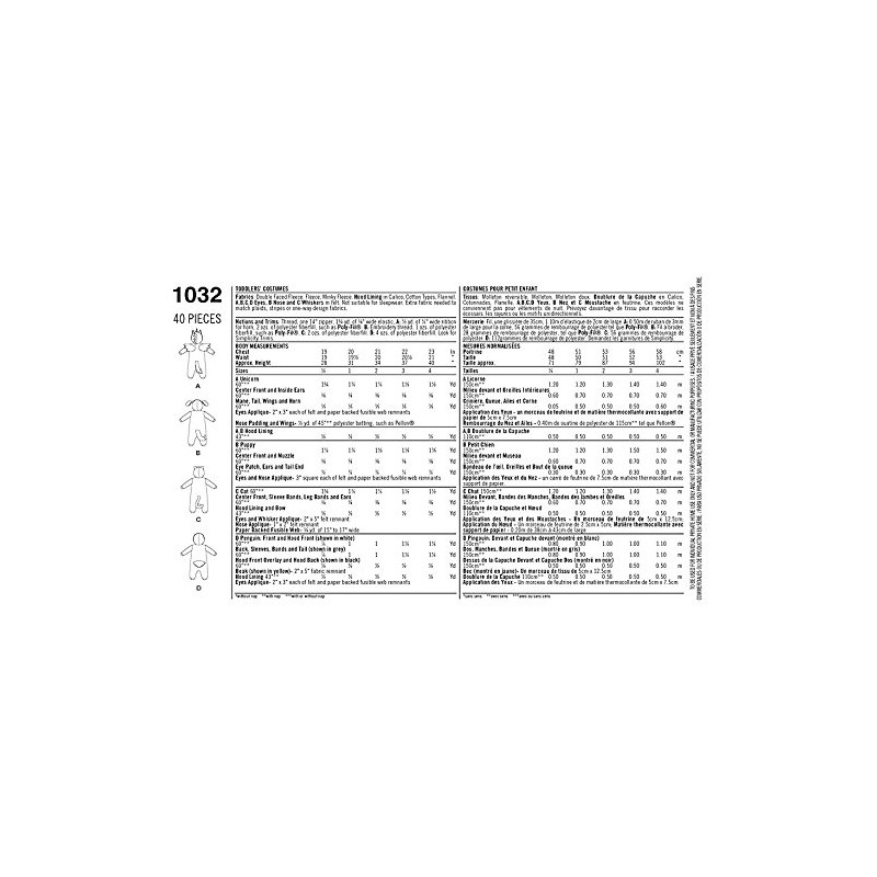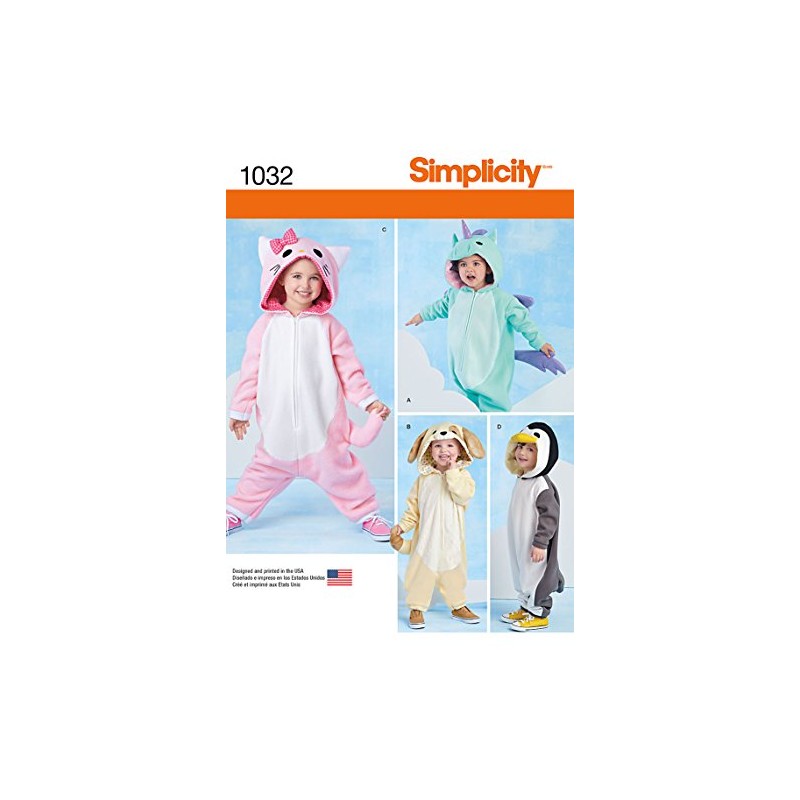 Simplicity Animal Onesie Costume for Kids Sewing Patterns, Sizes 1/2-4
