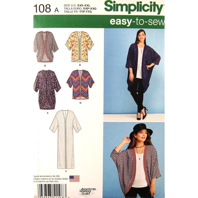 Simplicity Ladies Easy Sewing Pattern 1108 Kimono Tops & Cardigans