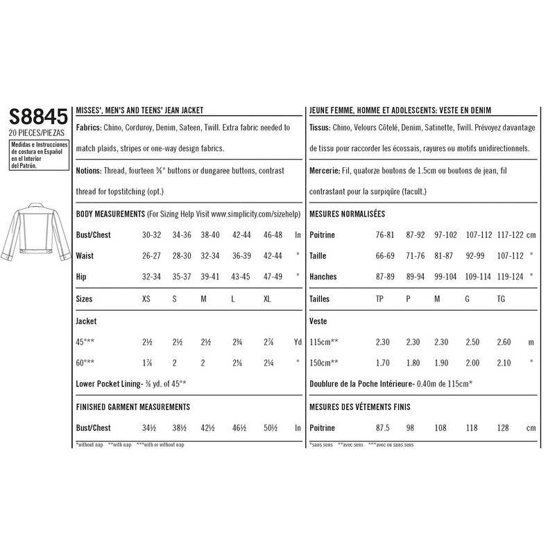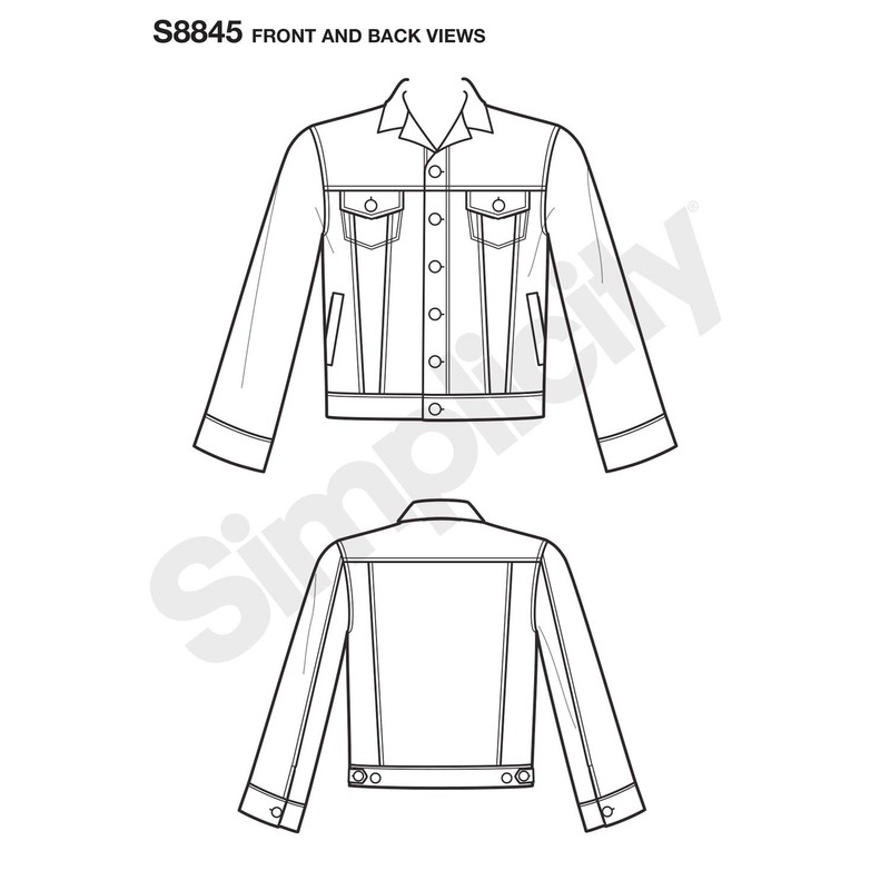 Simplicity Pattern S8845 Unisex Jean Jacket Sewing Pattern Kit by Mimi G Style, Code 8845, Sizes XS-XL