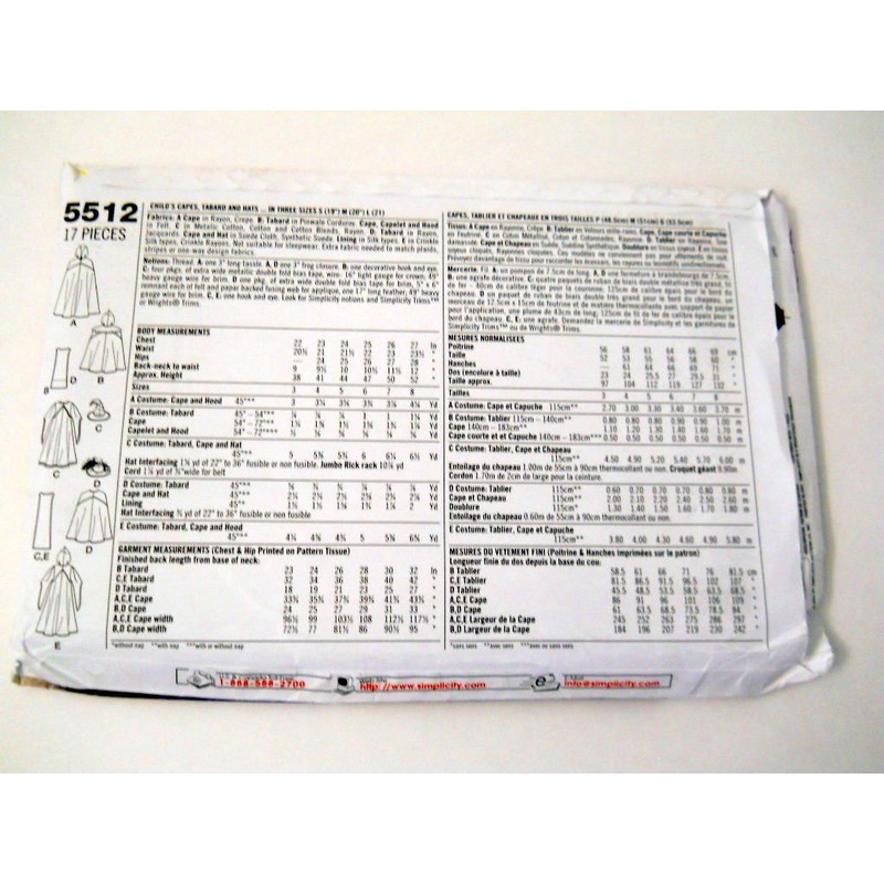 - Child costumes in size a (3-4-5-6-7-8) simplicity pattern 5512