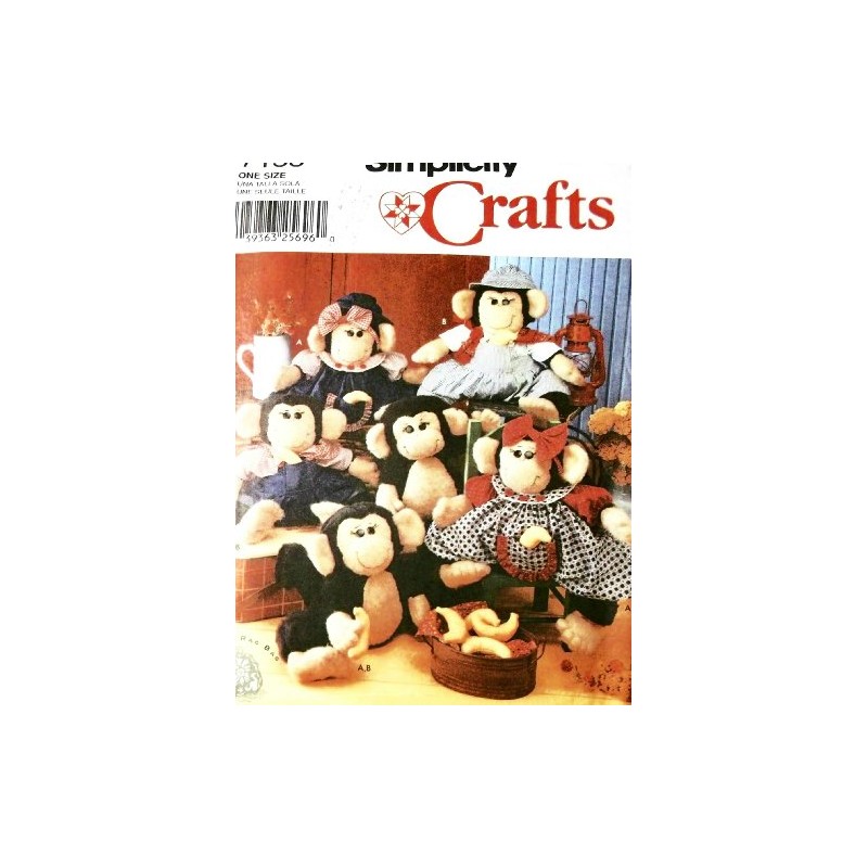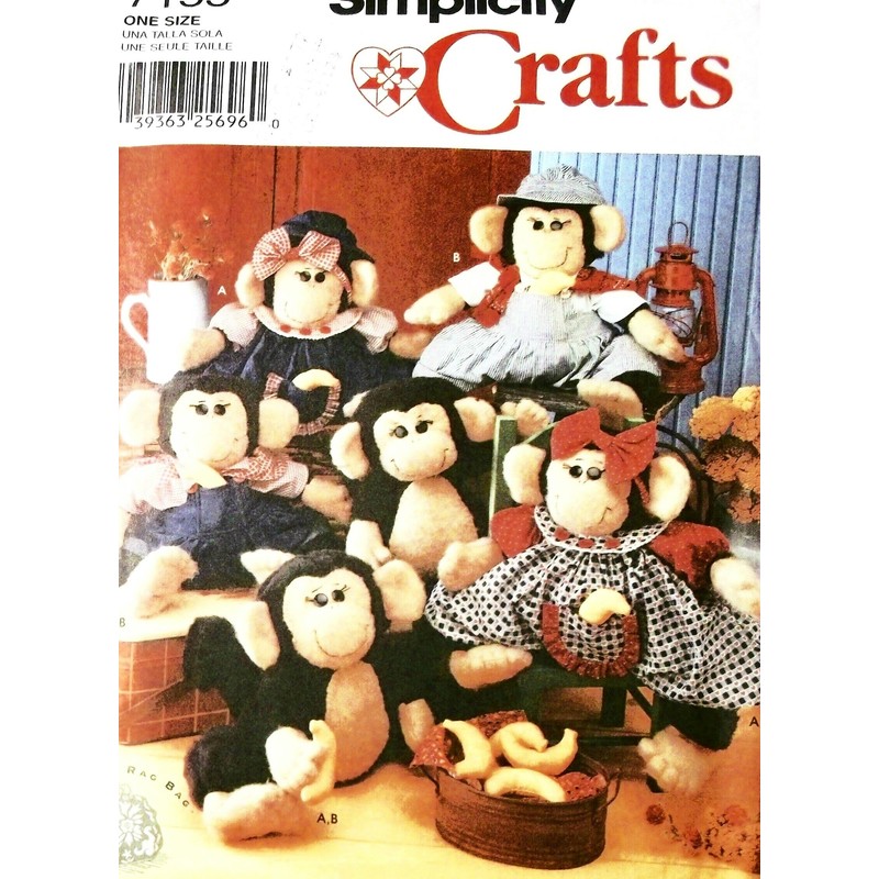 Simplicity 7155 Crafts Sewing Pattern Stuffed Monkeys and Clothes: This envelope contains patterns and instructions for making a stuffed monkey and his or her clothes. Monkey is approximately 16 inches tall. Make a jumpsuit, hat and headband for her. Make overalls, hat and a neck scarf for him.