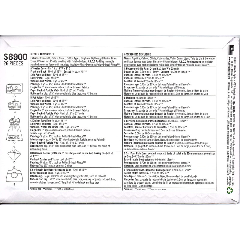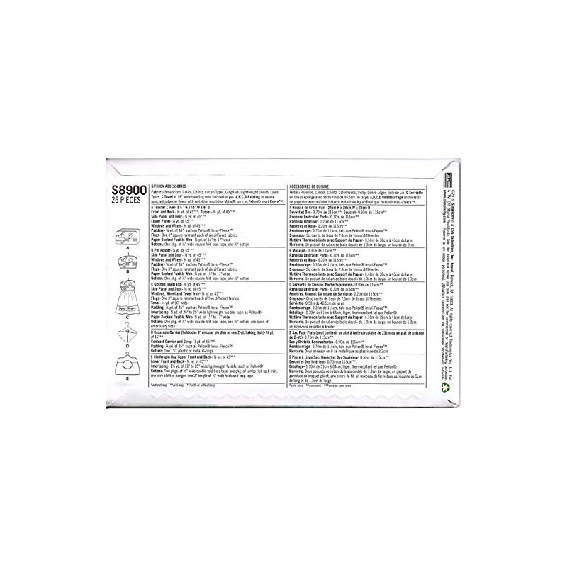 SIMPLICITY Sewing Pattern S8900 Kitchen Accessories, Paper, White, Various