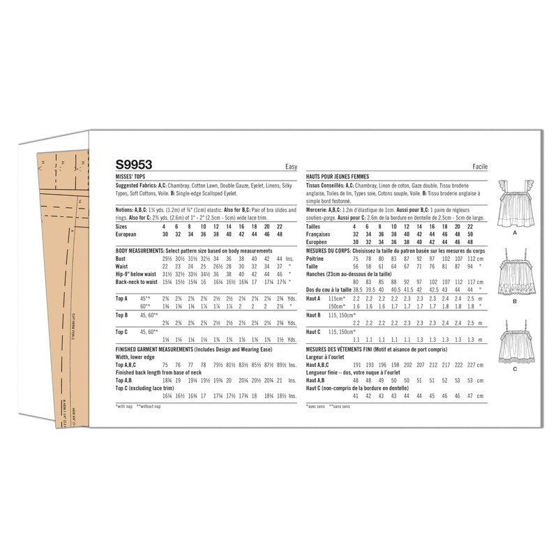 SIMPLICITY Sewing Pattern SS9953R5 Misses' Tops R5 (14-16-18-20-22)