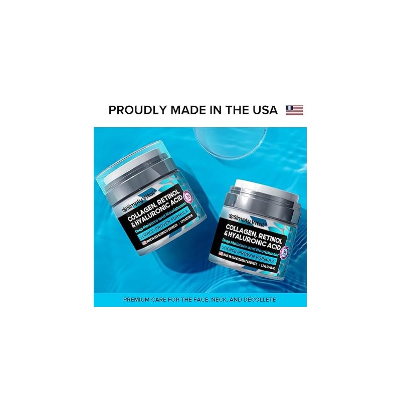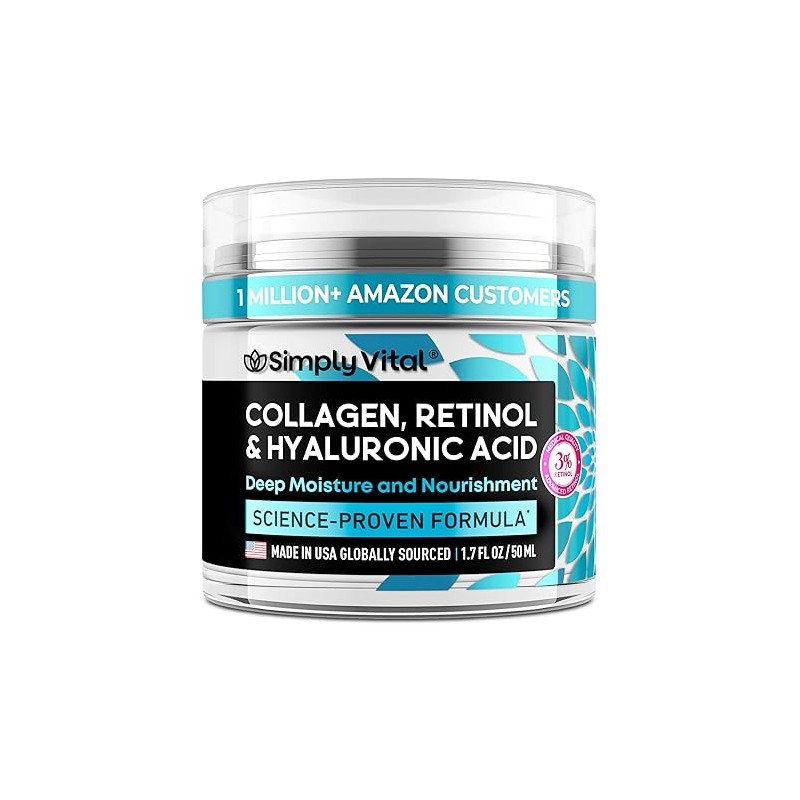SimplyVital Collagen, Retinol & Hyaluronic Acid Cream - Anti-Aging Face Moisturizer for Face, Firming Skin Care Neck & Décolleté - Made in USA, Daily Moisturizer Face Cream Day & Night - 1.7 fl.oz.