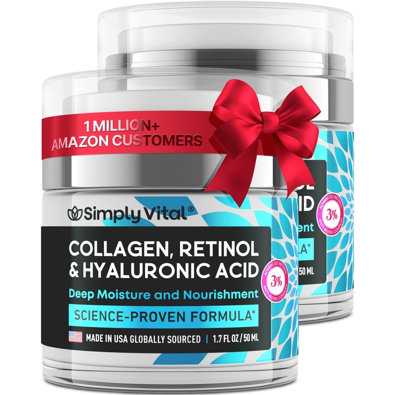 SimplyVital Anti-Aging Collagen Retinol Cream for Face, Neck & Décolleté with Hyaluronic Acid - Made in USA, Daily Collagen, Retinol & Hyaluronic Acid Cream, 2-Pack