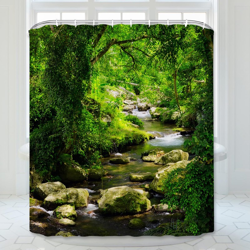 Simpomsy Plants Shower Curtain Green Nature Forest Jungle Tropical Rainforest Summer Landscape Scenery, 3D Digital Painting Pattern For Shower Stall, Bathroom Curtains With 12 Pcs Hooks 200x180cm