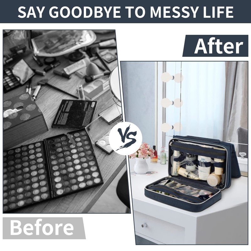 - ✅【Platzsparend】Größe: 9.5*7.2*2.5 Inch Toiletry Bag, große Kapazität, ausgestattet mit mehreren Fächern, kann verschiedene Toilettenartikel, Kosmetika oder Haaraccessoires usw. verstauen.