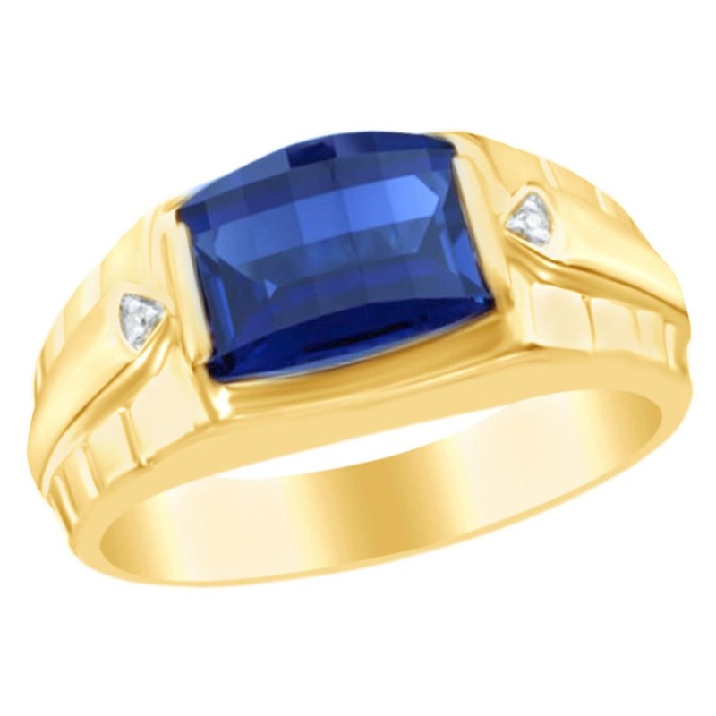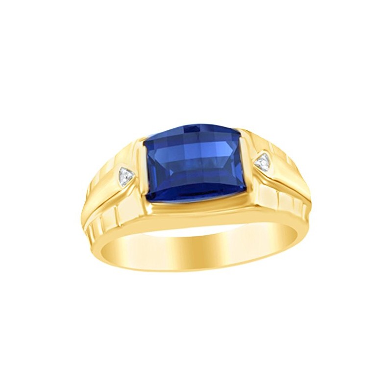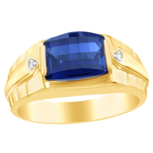 Simulated Blue Sapphire with White Natural Accent Diamond Men's Solitaire Ring in 925 Sterling Silver Ring Size-8